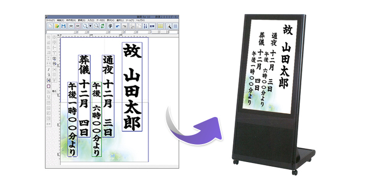 枠の入力モードを開かずに入力修正が可能となり会葬礼状や看板などの入力がより簡単に便利になりました。