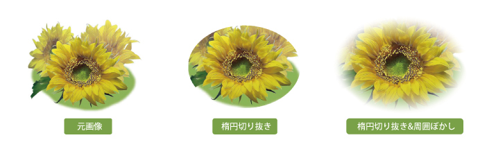 距形や円(楕円)の画像の切り抜きや、画像のぼかし処理の機能が搭載されていますので、画像のアレンジも簡単に行うことが出来ます。