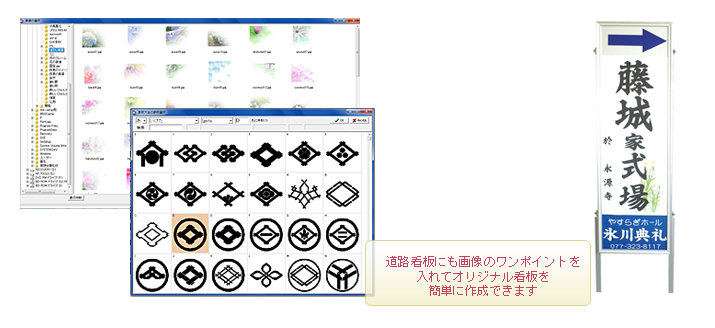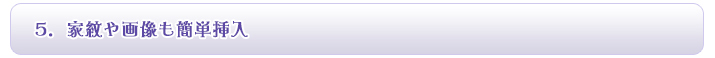 背景や会社のロゴなど用途に応じた画像や家紋を簡単に挿入することができます。